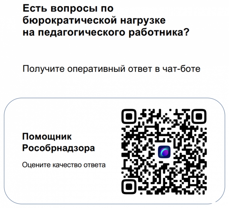 Для педагогов создан чат-бот «Помощник Рособрнадзора» на платформе «Сферум». Он помогает получить оперативные ответы на вопросы о бюрократической нагрузке, например, по участию в мероприятиях, выходящих за рамки образовательной программы, поступающим в образовательную организацию запросам, работе с документами.